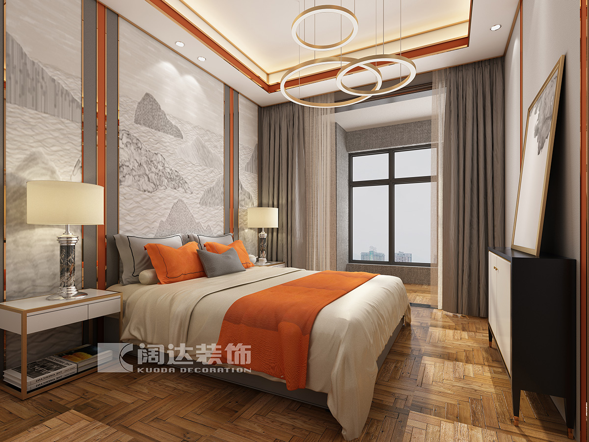 此案例沒有繁瑣的裝飾,局部色彩的點綴和金屬扣線的裝飾使中式風格更具有現代靈動的感覺。整體空間闡釋這生活的哲思,回歸內心的平靜,去尋找屬于自己的靈魂,讓設計蛻變為有溫度的生活藝術。