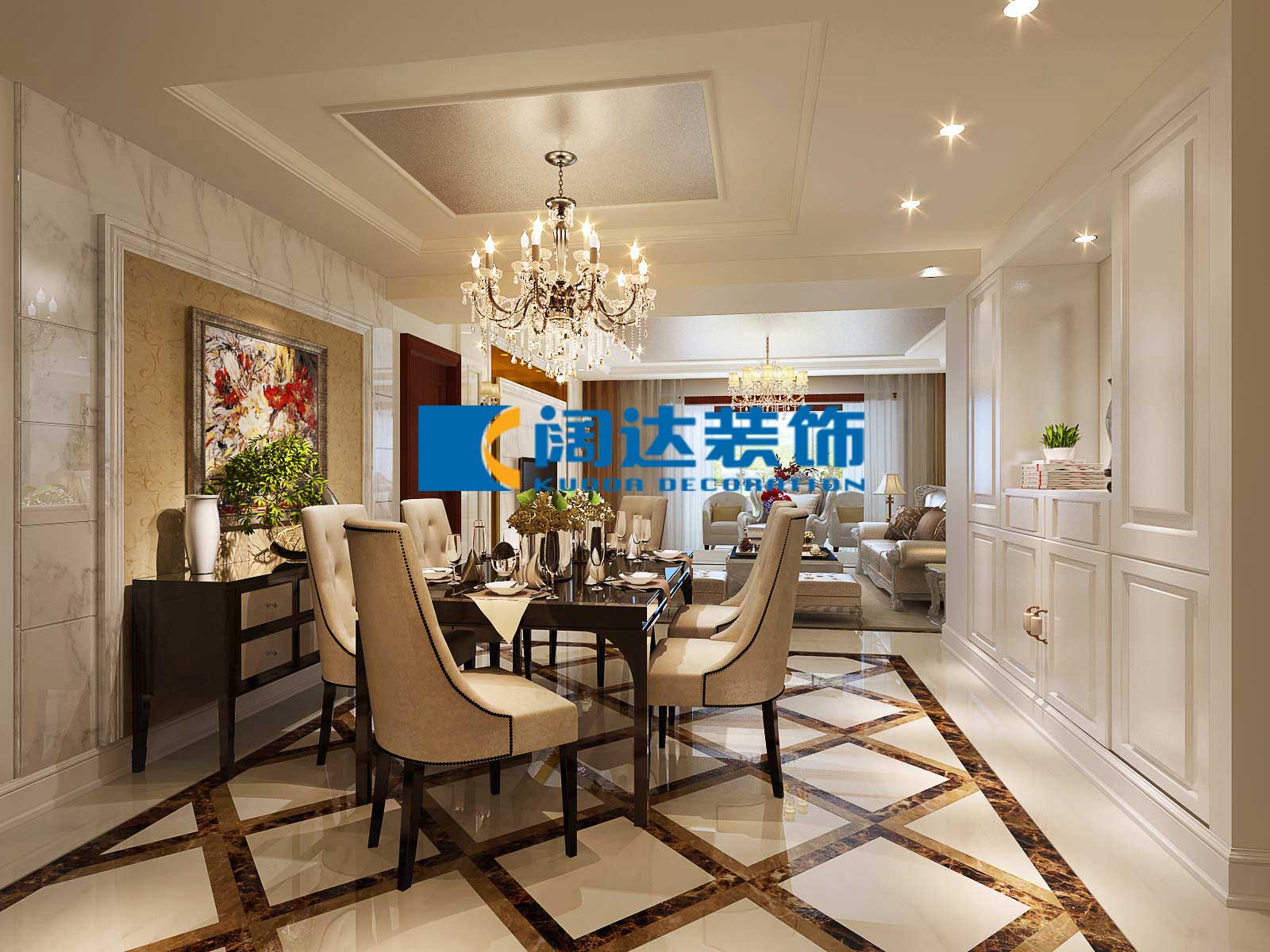 本案例采用歐式設計風格,通過整體色彩及家具的搭配營造自然、舒適、高雅的生活氛圍,此設計案例也在相當程度上表現出其居住者的品位、愛好和生活價值觀。