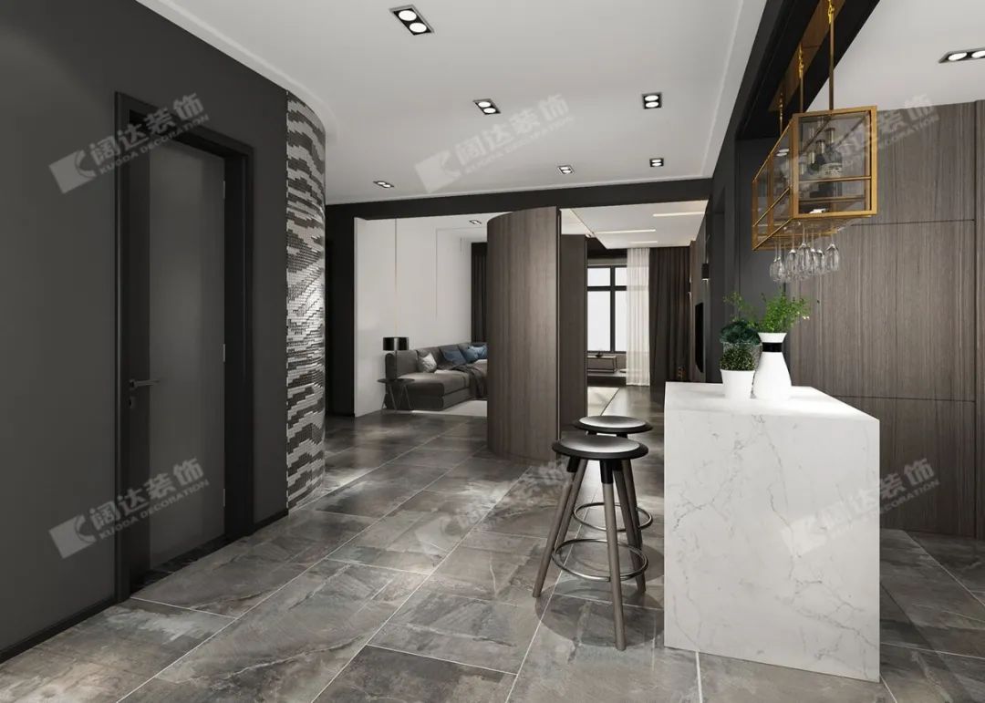 客廳與陽臺貫通,增加了空間的開闊感,用多種燈光的配比渲染光影,使得整個空間更加簡潔干凈。