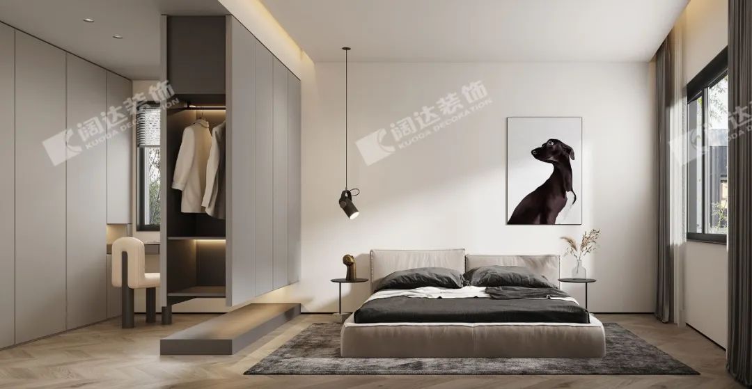 在個人獨立空間,針對每個房間使用者的生活習慣、需求去設立專屬他們的自在空間。比如進入房間隨手放置雜物的平臺、掛置外衣的區域、長輩房的起夜燈又或者喜好的色系等。