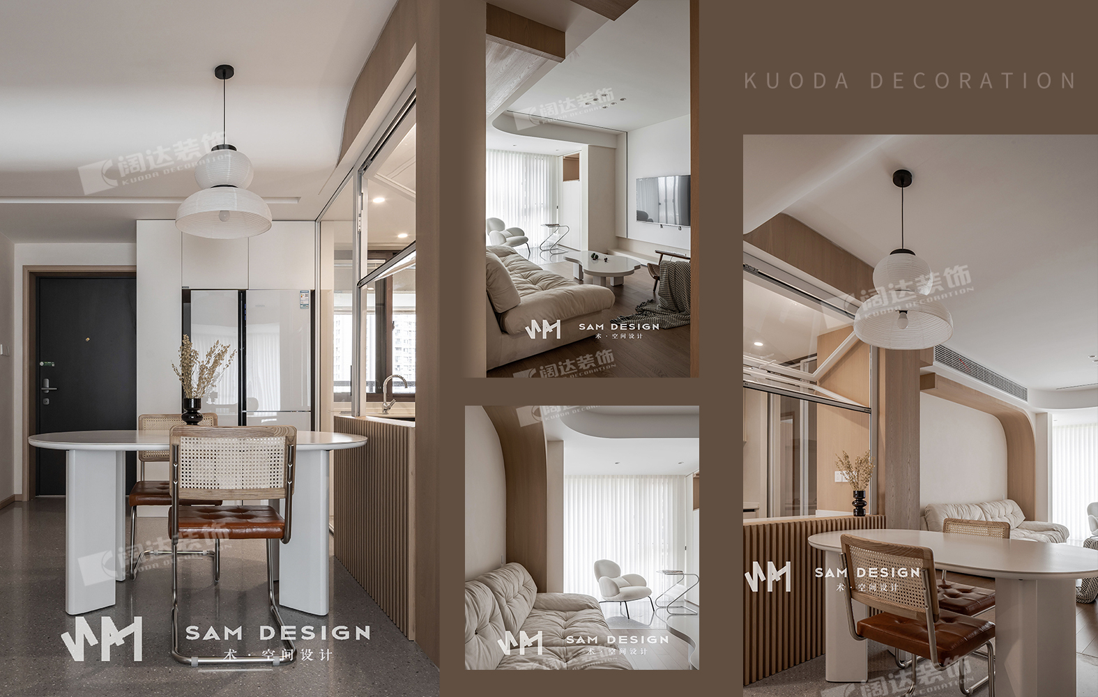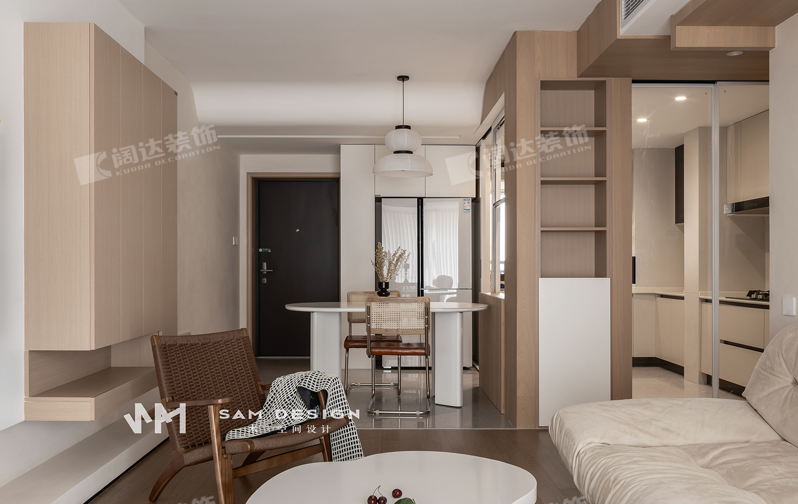 整個戶型中規中矩,設計師在功能分區時,大膽地打破傳統廚房餐廳概念,釋放空間。