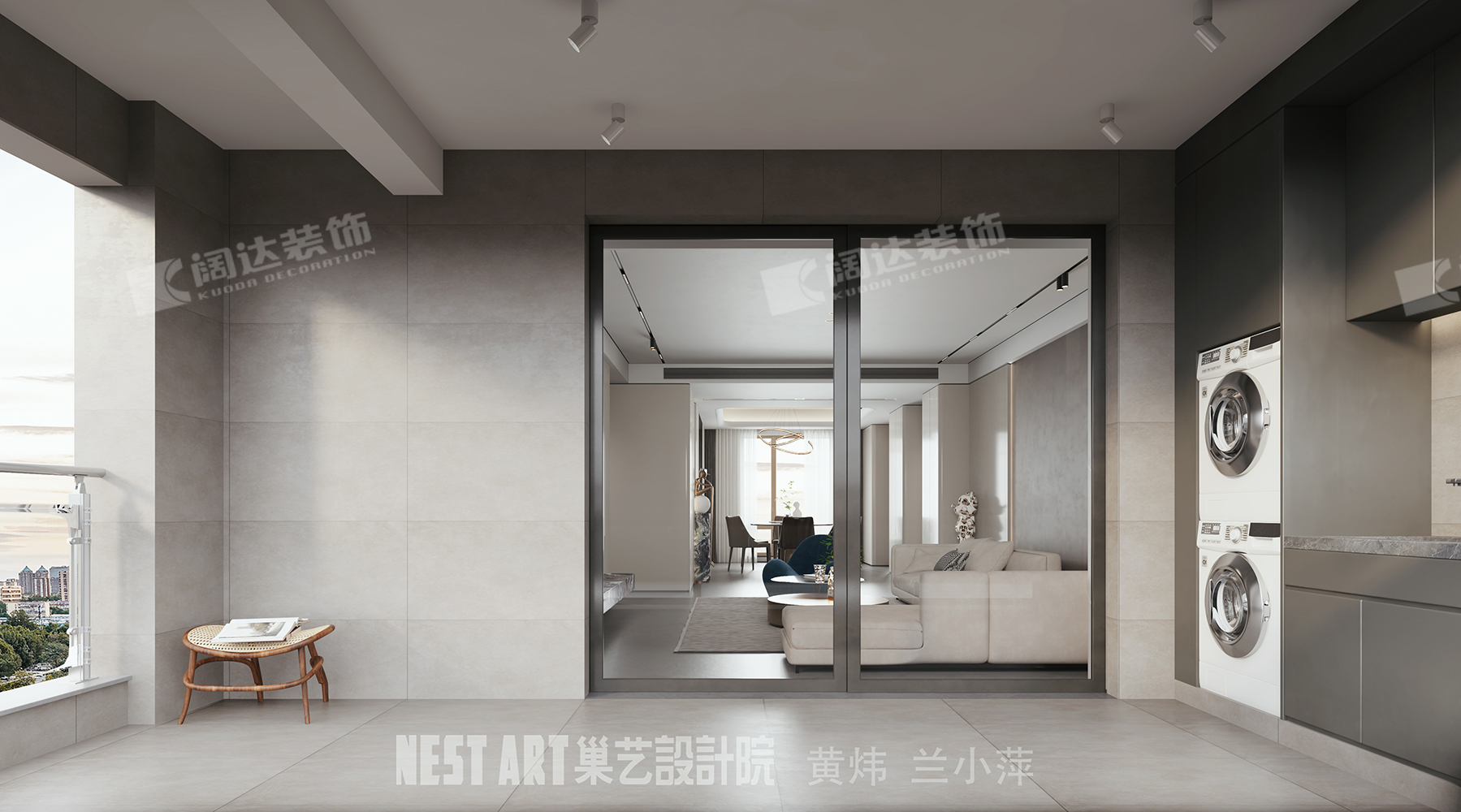 陽臺區面向江景,設計上沒考慮封窗,以全敞開形式,使空間更加休閑。