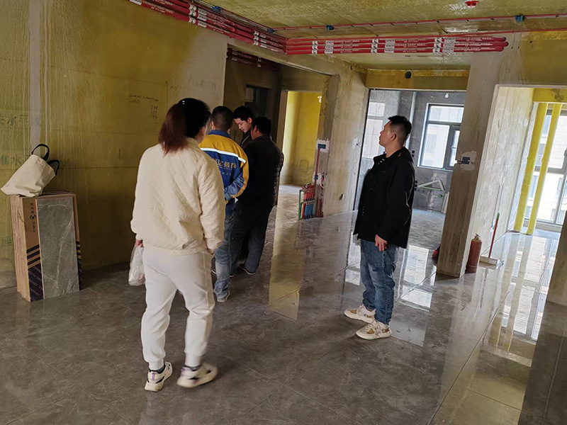 客戶、設計師、管家及水電師傅,現場確定水電位置,管家以文字加圖片形式發送至微信服務群,告知客戶今天交底的內容,待客戶確認后方可施工。