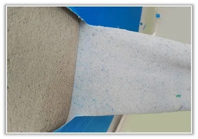 1、涂刷時要檢查基層是否存在起砂、疏松或大量的浮土、浮灰等現(xiàn)象,這些現(xiàn)象會導致防水層與基層的結合不穩(wěn)定,從而在閉水實驗時容易引起防水層起鼓,涂膜與基層分離的現(xiàn)象(如圖1)。針對現(xiàn)場基層起砂、不牢固的問題,需先對基層涂刷界面劑或墻固,增強墻體基層的附著力,然后再涂刷防水涂料。