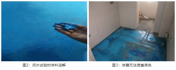 圖1:防水層起鼓,涂膜與基層分離